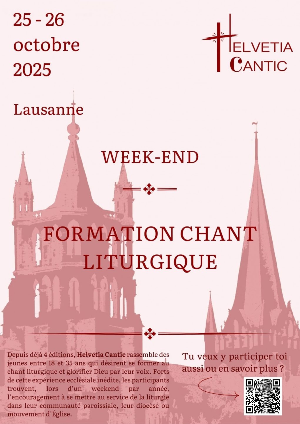 Helvetia Cantic rassemble des jeunes entre 18 et 35 ans qui désirent se former au chant liturgique et glorifier Dieu par leur voix. Forts de cette expérience ecclésiale inédite, les participants trouvent dans ces deux journées inspirantes l’encouragement à se mettre au service de la liturgie dans leur communauté paroissiale, leur diocèse ou mouvement d’Église.